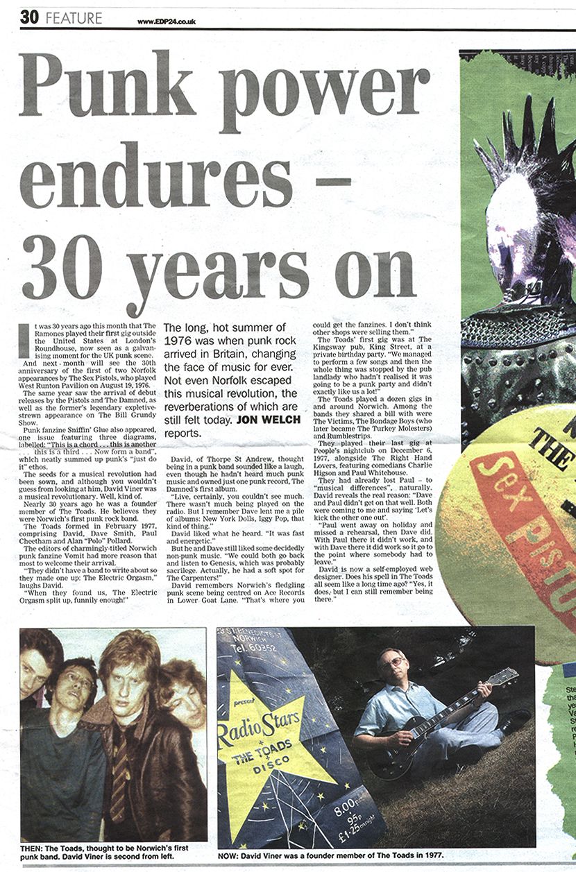 In 2006 local paper, the Eastern Daily Press decided to look into the 30th anniversary of punk rock. They produced this article: